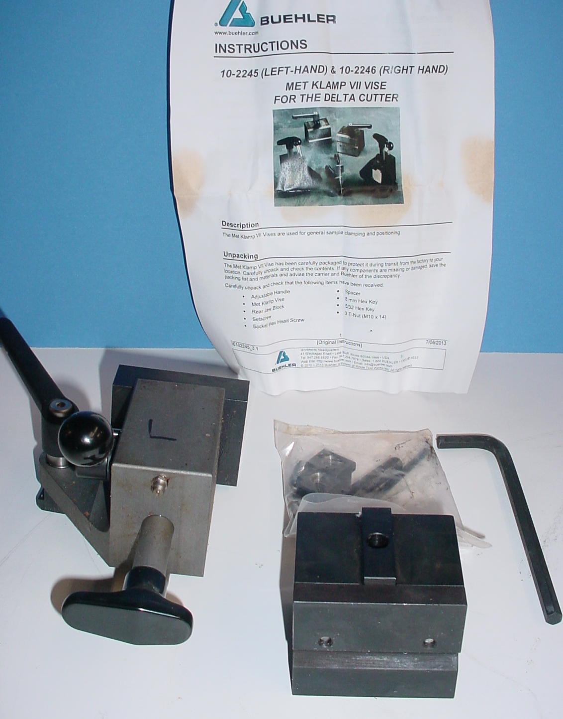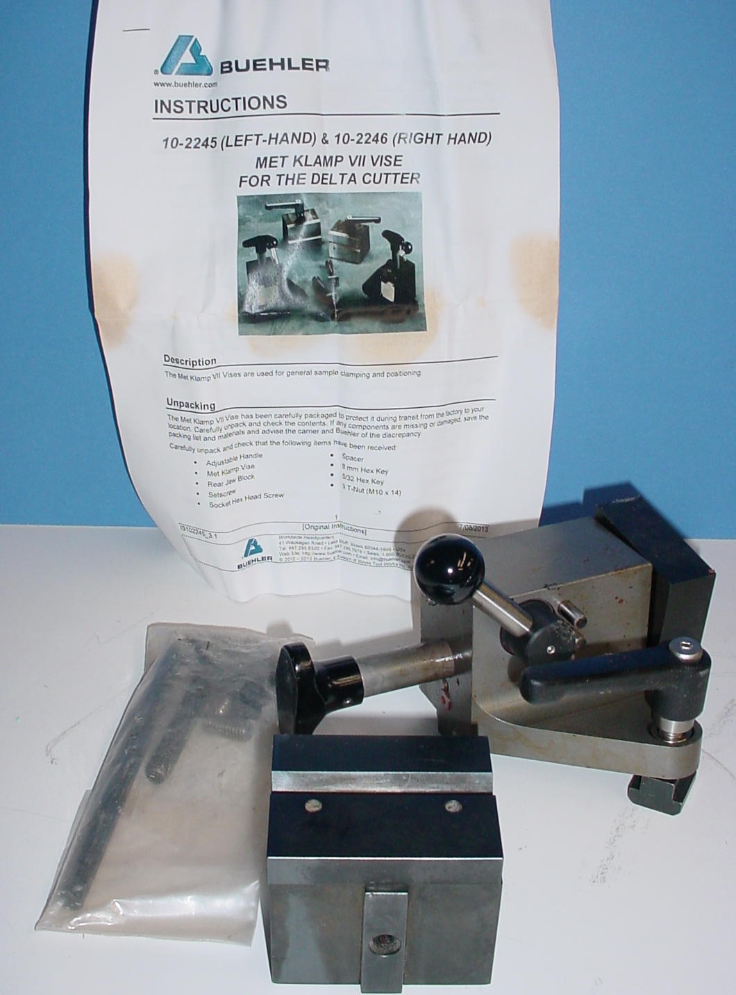 Buehler Met-Klamp II right hand vise, 10-3295 for Samplmet abrasive saw. Mounts
