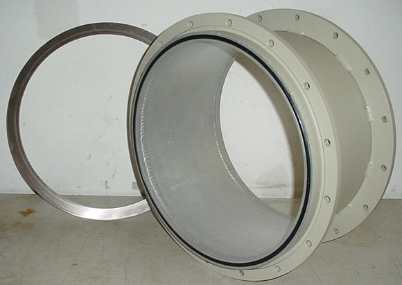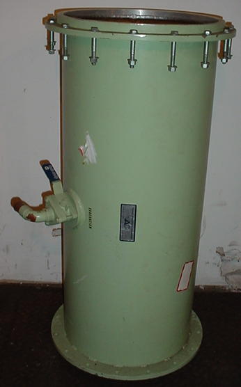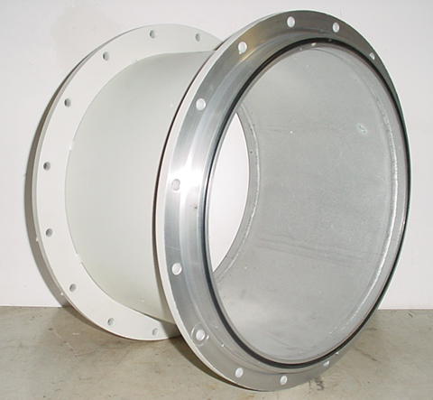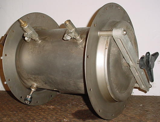 Vacuum Atmospheres small anti-chamber. 12″ diameter by 19.5″ long, 14.5″ bolt circle mount. |