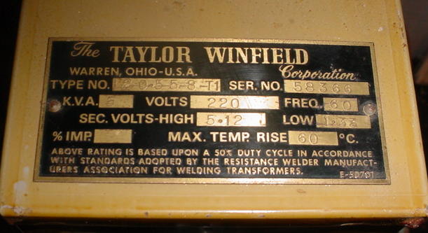 Taylor-Winfield 5kva transformer; 42-0.5-5-8-T1, 220 volt input, 1.33 to 5.12 out wit taps. 68# |