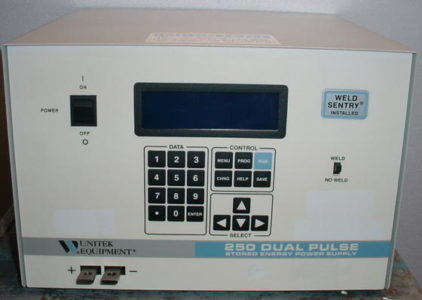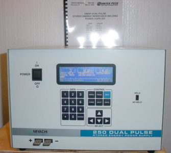 Unitek Miyachi Dual Pulse 250DP welding supply,   6700 amp max output.   1-250-02, 120 volts. 50/60 hertz.  100 pound net weight.   (Add $950 for Weld Sentry option 250DPS 1-254-02)