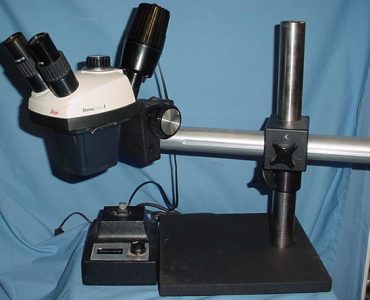 Leica StereoZoom 5, .8-4x, w/S stand, E arm, 10 x eyepieces, Nicholas illuminator SVB-84 21-26-40-84