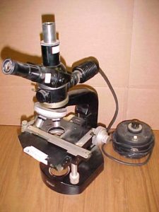 Nikon 76400 S Series scope, 1.5 x epi illumination monocular w/photo tube, 5,10 & 20 x, 2″x 2 “micrometer stage
