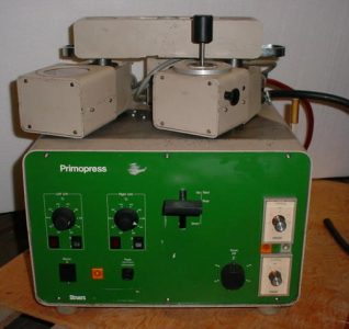Struers PrimoPress 1.25″ mold. 115 volts. Only one side operable. We now have a spare 1.50″ mold , which may make the other side work