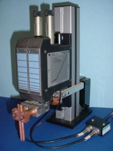 Unitek Miyachi Thinline 88F foot pedal operated series head, 2-161-04 1/4″ or 1/8″ eccentric electrodes with MSP foot pedal