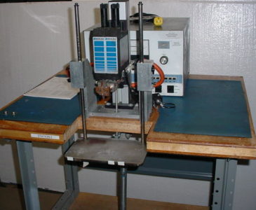 Unitek Miyachi 250 (analog) with 88F series double head and MSP foot pedal, mounted on a 30 x 30″ bench. Has adjustable depth fixture. Ideal for battery tabbing operation. 120 volts